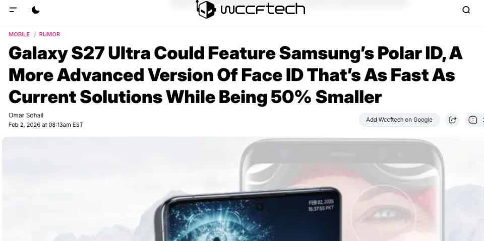 三星Galaxy S27 Ultra或将首发Polar ID技术,以偏振光方案挑战Face ID