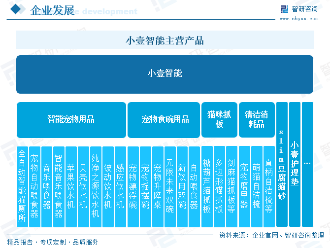 小壹智能科技扬州有限公司(以下简称“小壹智能”)成立于2018年,是一家致力于宠物产品研发、设计、制造、销售及服务的综合性企业,主攻智能宠物用品领域,主营产品包含智能饮水机、喂食器、智能玩具、全自动智能猫厕所等。同时,小壹智能坚持以“线上+线下”双运营模式布局宠物市场,目前公司营销网络遍及国内各大市场,建立了完善的营销网络,在京东、天猫等大平台取得跨越式发展。此外,小壹智能还重视国外市场,建立“内销+外销”双动力发展模式,依托亚马逊平台,产品远销美国、俄罗斯、澳大利亚等二十多个国家和地区。