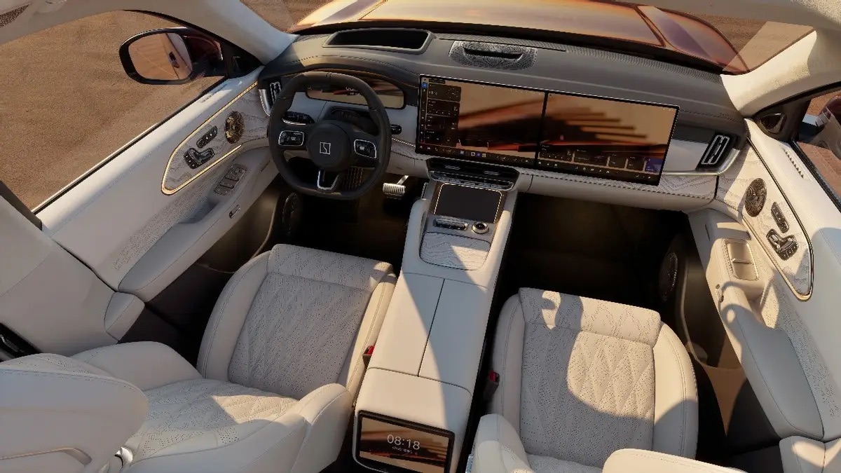 动力系统方面,8X搭载2.0T插电混动架构,发动机最大输出205kW。普通版本采用双电机布局,而性能旗舰版则升级为三电机系统,综合输出达1400马力,最高时速230km/h。此外,6C超快充电池、浩瀚AI数字底盘及48V主动稳定杆等高阶配置也有望同步搭载。