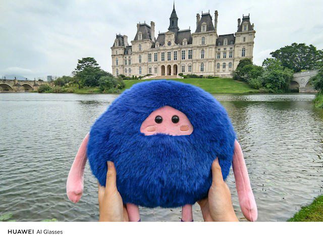 照片中,何刚双手托举玩偶,画面呈现第一视角沉浸式构图,水印明确标注拍摄设备为“HUAWEI AI Glasses”。这一细节证实该眼镜已具备独立影像采集能力,可实现真正意义上的双手解放式拍摄。值得注意的是,该图像分辨率达到4096×3072,超越标准4K规格,且在垂直方向拥有更宽广的视野范围。