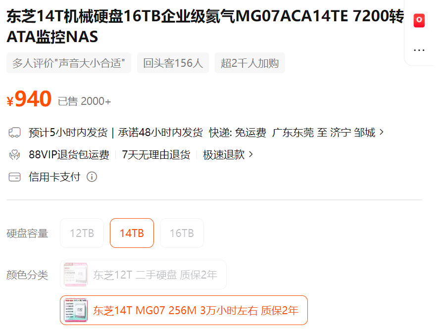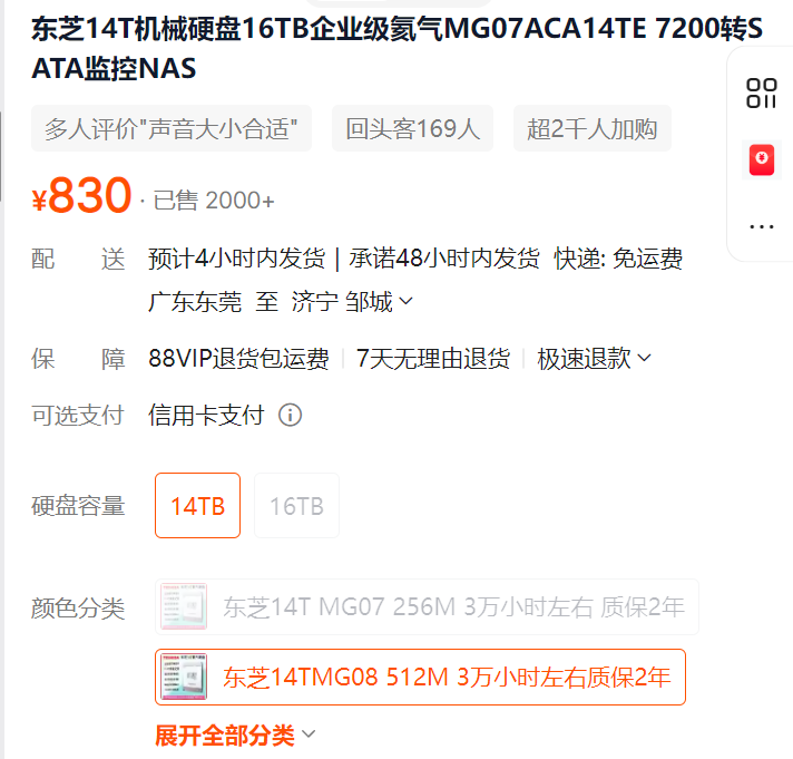 好了,废话这么多,那硬盘还能买么?个人觉得,如果真有需求的话,还是优先考虑二手盘吧。当然非必要不要买。目前比较推荐买的,就东芝MG08了。我个人用下来1个月,不管温度表现还是噪音表现,都非常优秀,价格也相对合理。容量的话,目前性价比最高的仍旧是14T,有条件16T也可以。非NAS用的话,全新盘更合适,价格就贵了600左右。