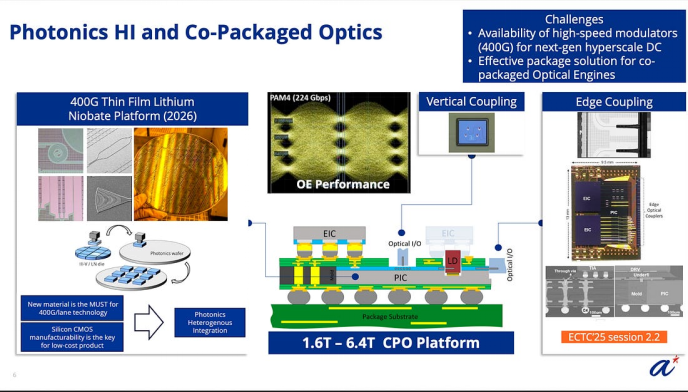 A*STAR战略性地聚焦于光电子异构集成(Photonics HI),正在加速开发一个能够支持每通道400G、总带宽范围从1.6T到6.4T的光引擎平台,目标是未来的超大规模数据基础设施。