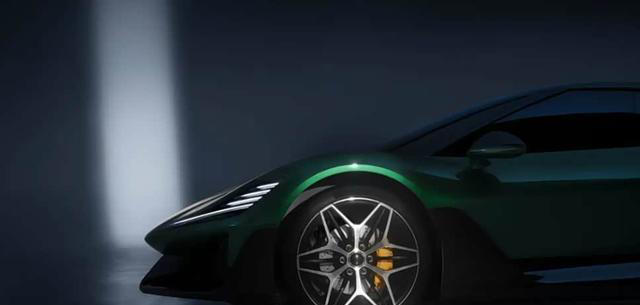 预告图展示了车辆的侧面轮廓,车身结构显得修长,前后翼子板部分采用隆起的处理,轮圈为六辐式花瓣造型,中央螺栓结构较为醒目,这可能意味着碳陶制动系统的应用。车身侧面配备了大尺寸的侧翼端板,与隐藏式的A柱设计相融合,让视觉重心更为低趴,线条延伸感较强。