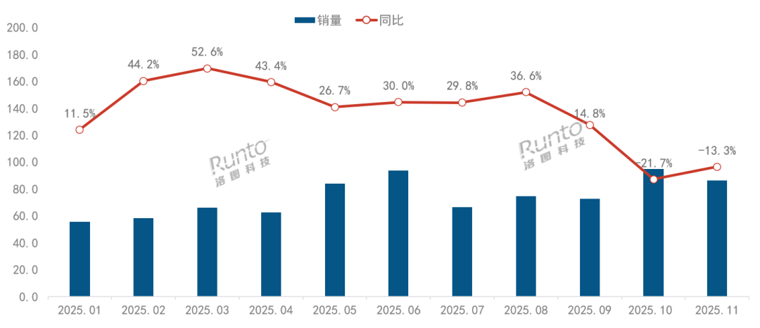 【区角快讯】曾被视为智能家居“明星品类”的智能门锁,如今正面临增长乏力的现实挑战。据洛图科技(RUNTO)线上全渠道监测数据,2025年双11促销周期内,10月与11月线上销量分别录得94.9万套和86.0万套,同比下滑21.7%与13.3%。