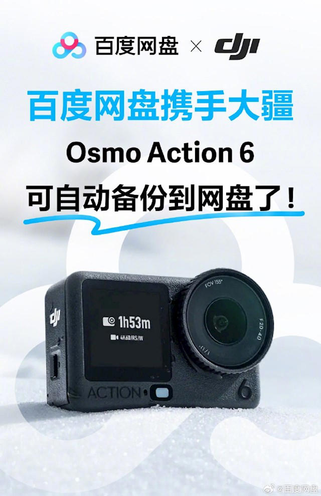 【区角快讯】2026年1月8日,百度网盘正式上线针对大疆运动相机的素材自动备份功能,Osmo Action 6成为首款适配该服务的机型。此举显著简化了用户从拍摄到云端存储的操作流程。
