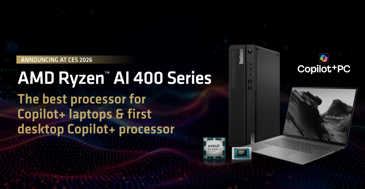 【区角快讯】在CES 2026展会期间,AMD正式推出锐龙AI 400系列处理器,并宣布产品将于2026年第一季度上市。然而,华硕已在京东平台上线灵耀16 Air 2026与a豆14 Air 2026等多款搭载该芯片的笔记本,明确标注1月22日开启销售。