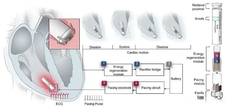 该新型起搏器体积仅如胶囊大小,显著小于传统火柴盒尺寸的设备,可通过导管经由股静脉微创植入心脏内部,大幅降低手术创伤与恢复风险。其核心突破在于集成了一套高效能量再生系统,能将心脏每次搏动所产生的机械能转化为电能,单次跳动可产生约40微焦的能量。